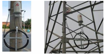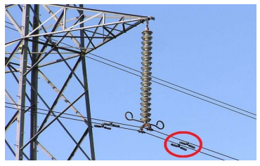 There is another type of Stockbridge damper that is found on telephone cables. The placement of these dampers is generally at the center of the span between two telephone poles, rather than near a pole.
