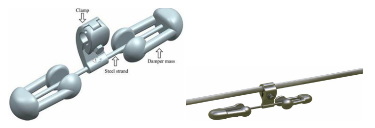See https://en.wikipedia.org/wiki/Stockbridge_damper for a more detailed description ofstockbridge dampers.
