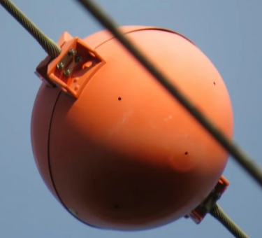 These balls are placed on the wire furthest from the ground, usually a ground wire, and are required on power lines more than 200 feet high. They are spaced not more than 200 feet apart and may be much closer together.