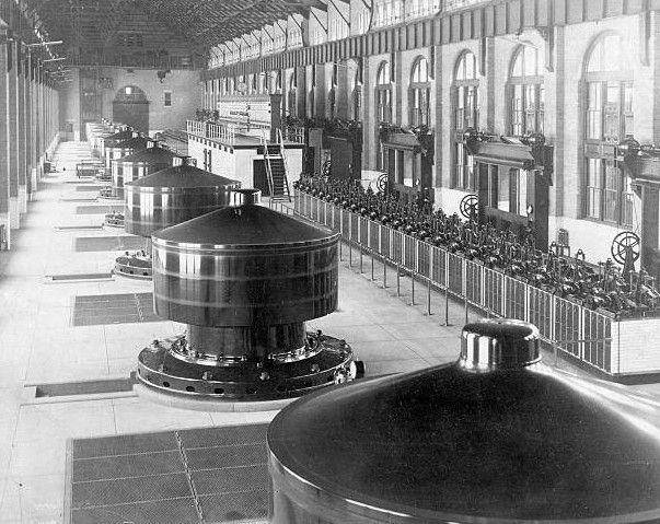 Each of the two Power Houses contained 10 generators, a total of 20 generators, although one reference states that there was a total of 21 generators. They were rated at 5,000 Horsepower each and generated 2-phase electricity at 25 Hz and 2,200 Volts. At the time, 2-phase power was all that was understood in the U.S.. However, Charles Proteus Steinmetz pioneered 3-phase power in Europe and he and Tesla decided on 3-phase transmission of power to Buffalo. The transition from 2-phase, 2,200 Volts to 3- phase, 11,000 Volts and, later, 22,000 Volts was performed by the 10 transformers in the Transformer House. They were configured as five Scott-T (https://en.wikipedia.org/wiki/Scott-T_transformer) banks, each capable handling the output of four generators. Interestingly, when the 3-phase power arrived as Buffalo, they didn’t know what to do with it. So, they converted it back to 2-phase power.